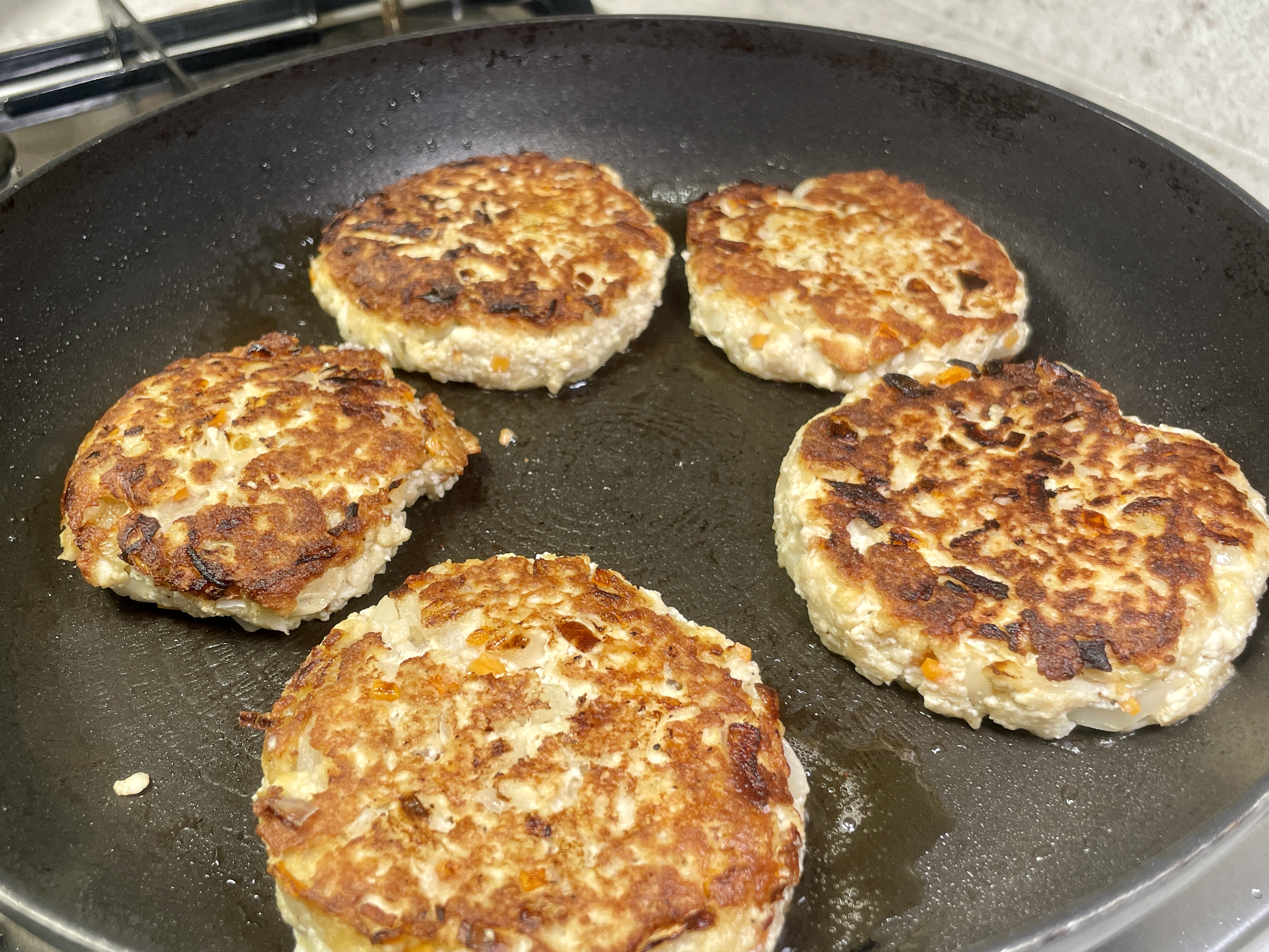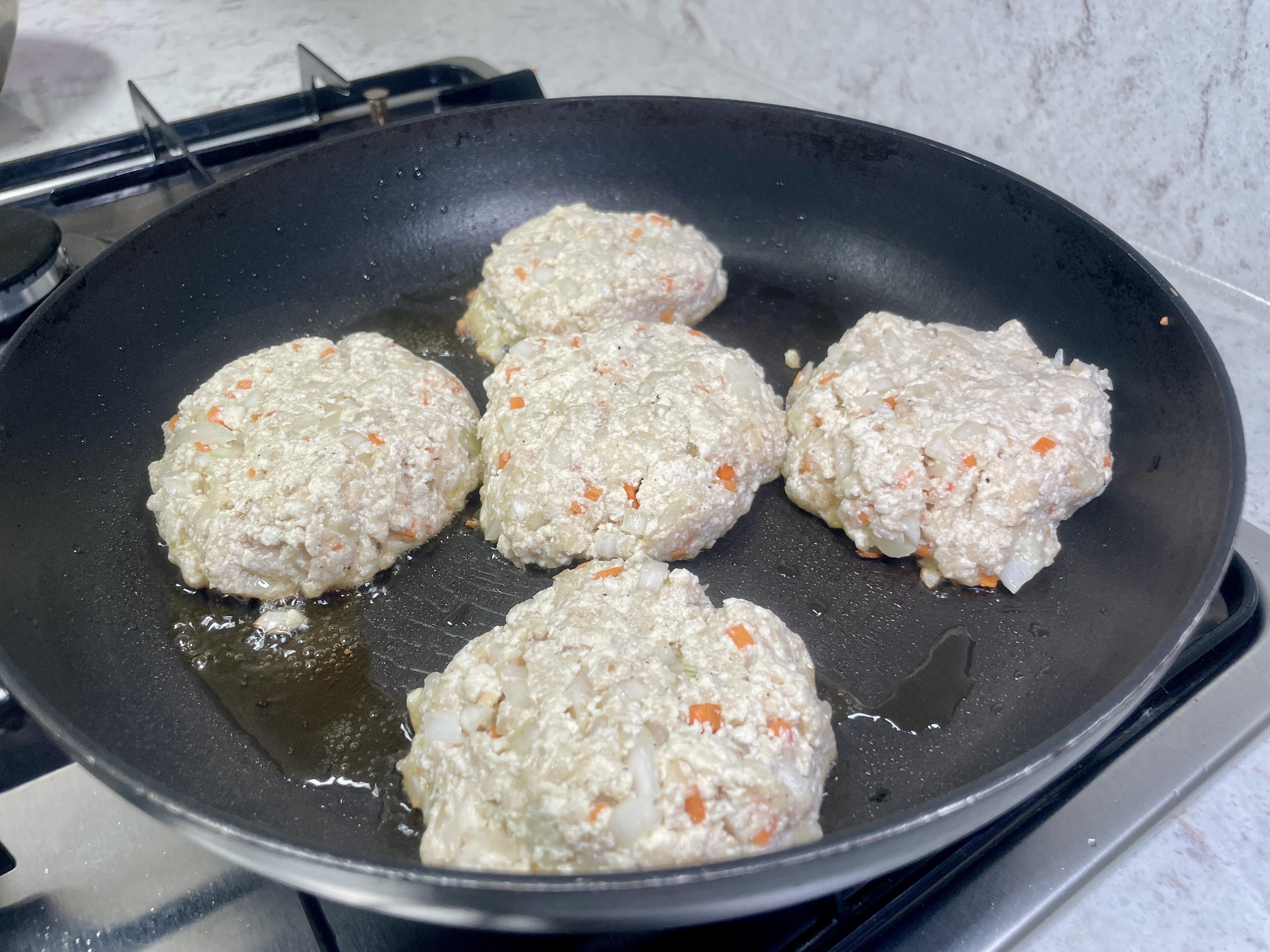 팬에 기름을 두르고 중불에서 앞뒤로 노릇하게 구워줍니다.