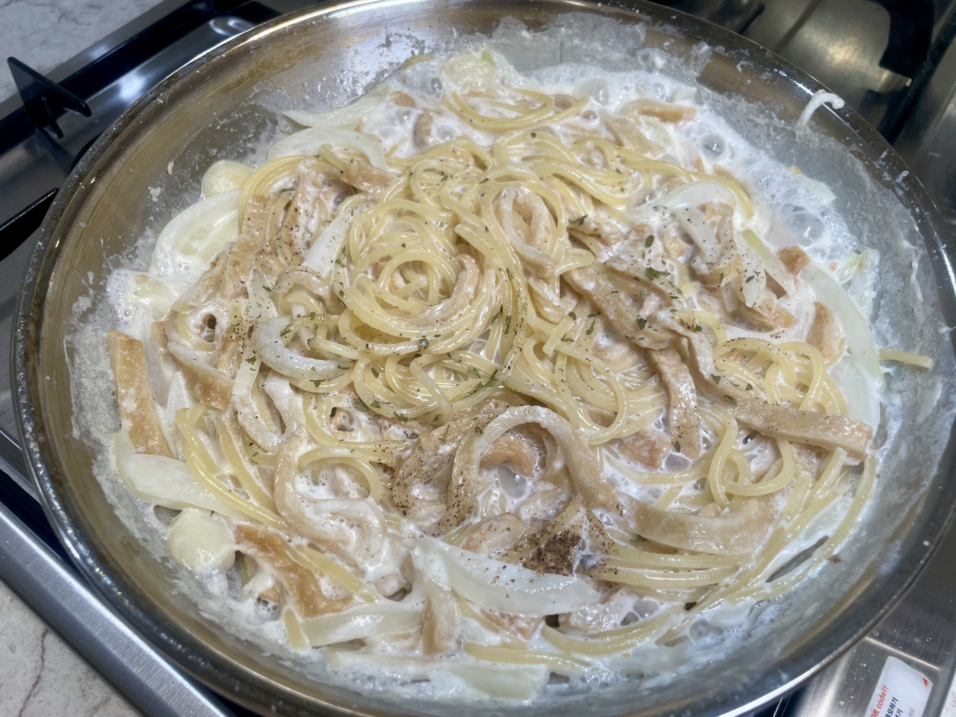 또 양파와 마늘이 들어가서 크림의 무거움을 잡아주니, 느끼한 크림파스타를 잘 못 드시는 분들도 부담 없이 즐길 수 있어요.