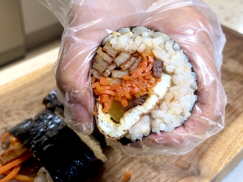 부드러운 밥과 짭조름한 어묵, 고소한 지단이 잘 어울려 한 줄만 먹어도 포만감이 느껴져요.